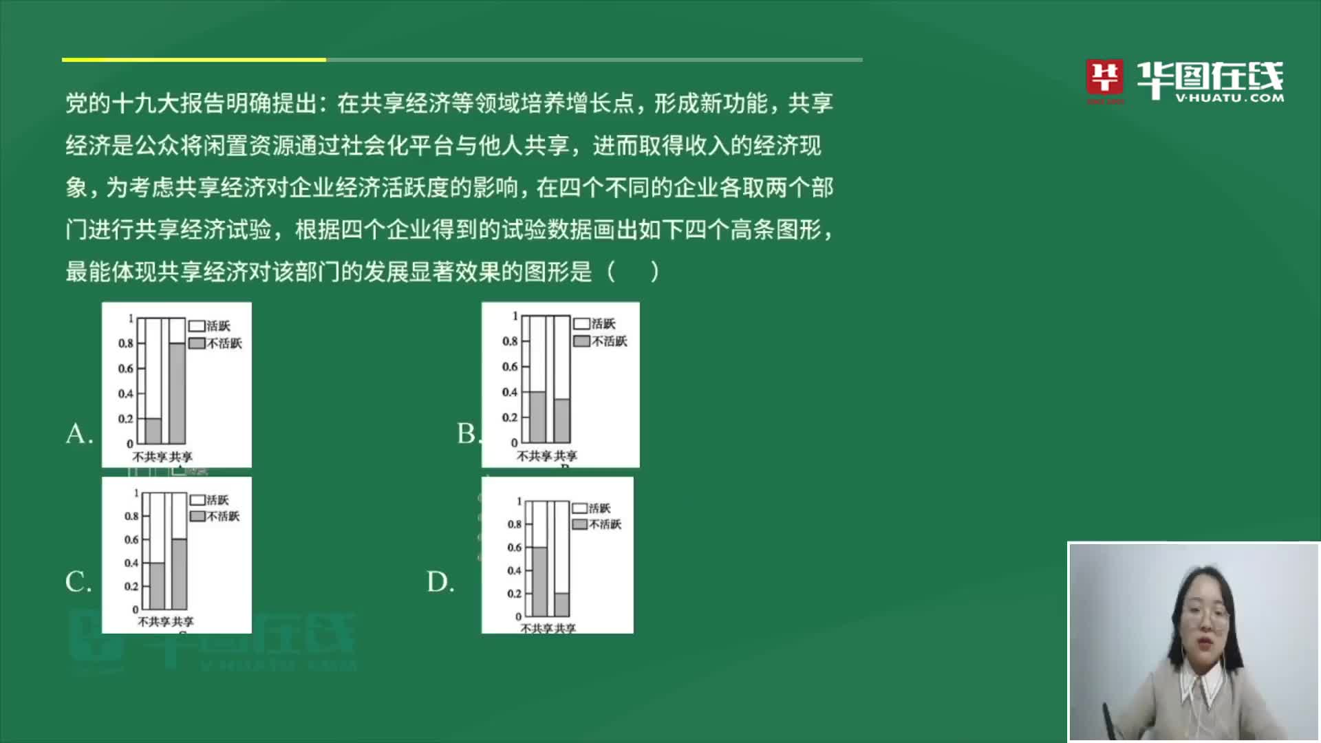 根据四个等高条形图可知,选项D中共享与不共享的企业经济活跃度差异最大,它最能体现共享经济对该部门的发展有显著效果。故本题选D。
