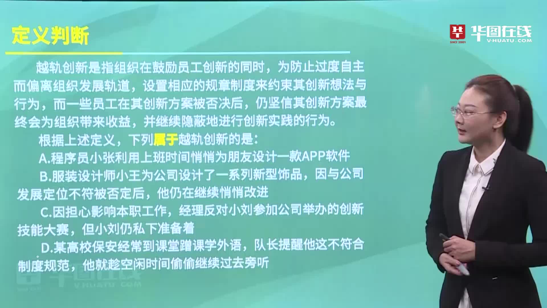 D项:小王设计的新型饰品因与公司发展定位不符而被否定,符合企业“为防止过度自主而偏离组织发展轨道”而进行的约束,他仍继续悄悄改进,符合“在其创新方案被否决后,仍坚信其创新方案最终会为组织带来收益,并继续隐蔽地进行创新实践”,符合定义,当选。